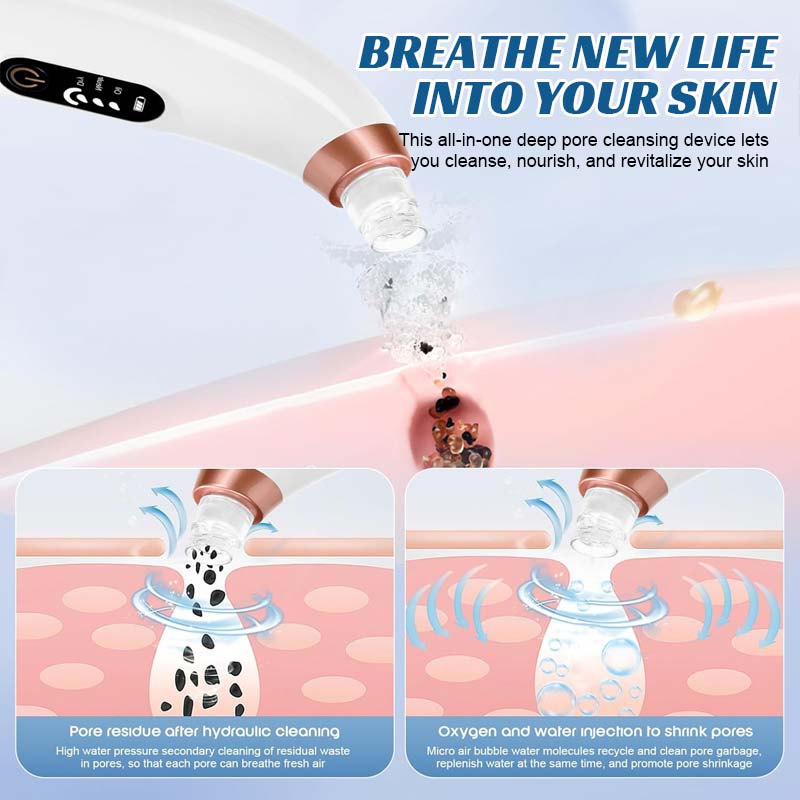 Während es sanft Schmutz und Mitesser absaugt, injiziert es gleichzeitig feuchtigkeitsspendende, nährstoffreiche Mikrobläschen, die Ihre Haut weich, rein und strahlend machen – ohne sie auszutrocknen oder zu reizen.