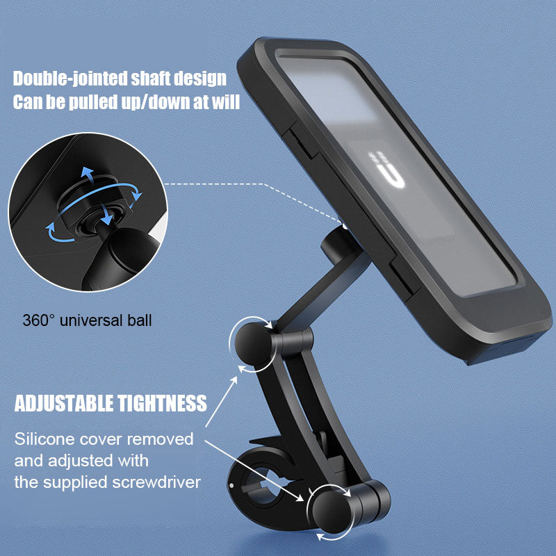 Diese Motorrad-Telefonhalterung ist einfach zu verstellen und um 360° drehbar, um jede Höhe/Winkelanforderung zu erfüllen!